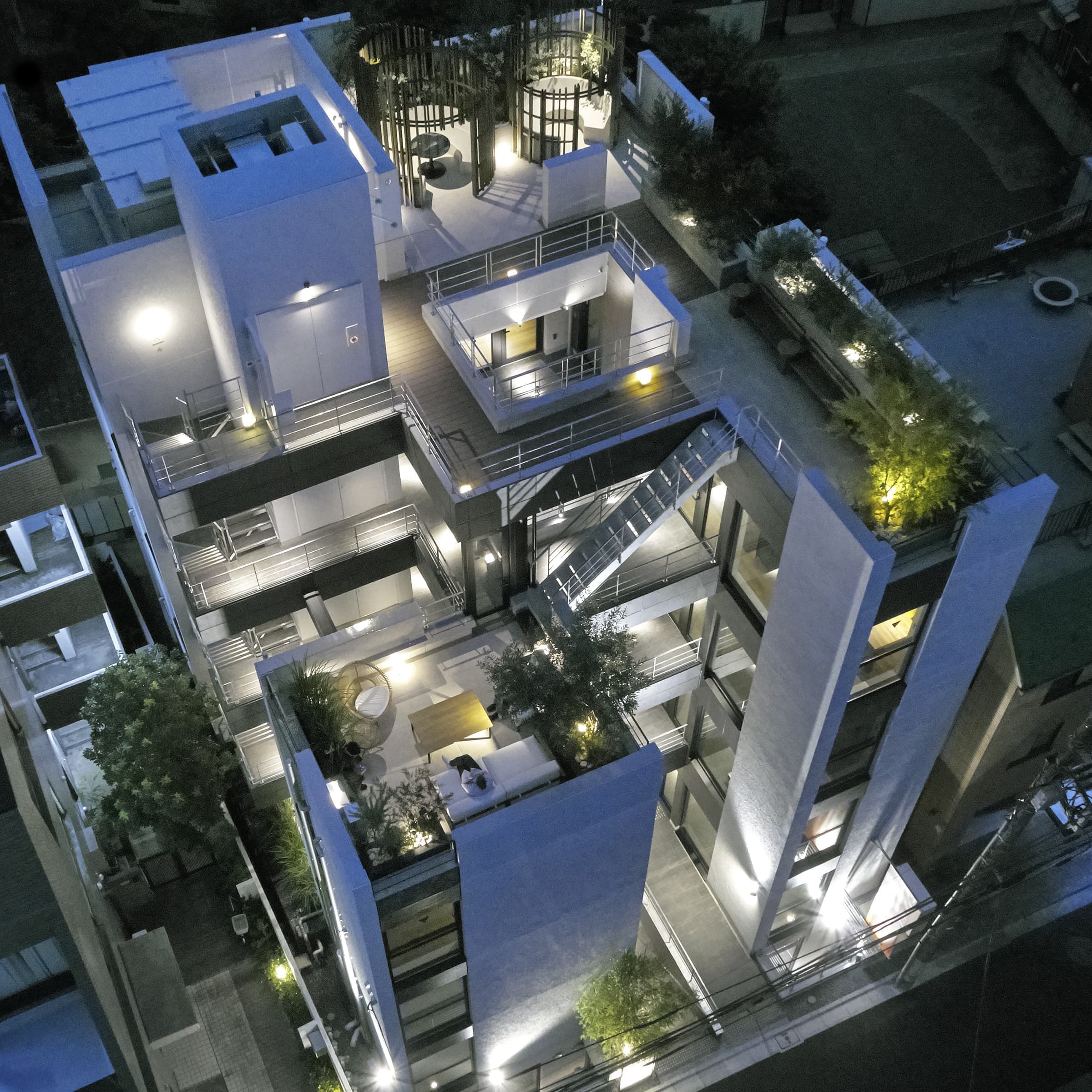 小規模敷地に最大限に重層したペンシル型マンション 1フロア1部屋の2面採光通風